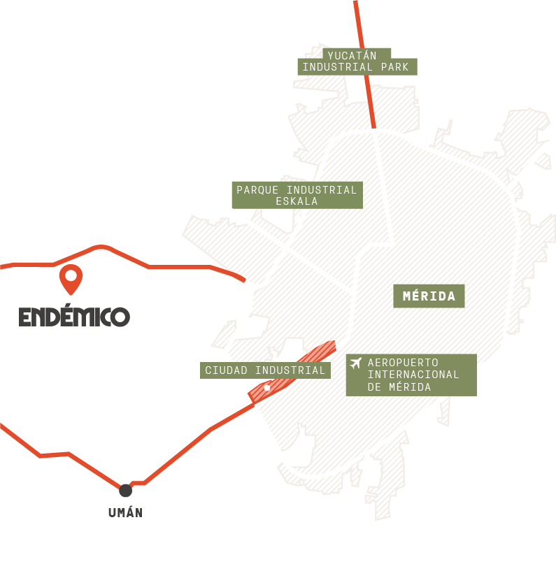Endémico se encuentra en el Corredor Industrial de Mérida - Hunucmá, ubicación con acceso a carreteras estratégicas y cercanía a la central de logística más vital del estado, Puerto de Progreso.